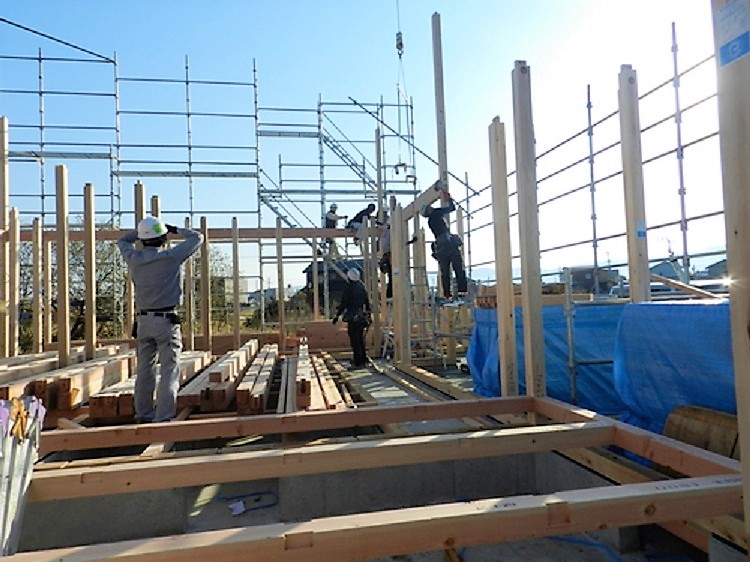 この日は天気も良く上棟日和でした(*^_^*)