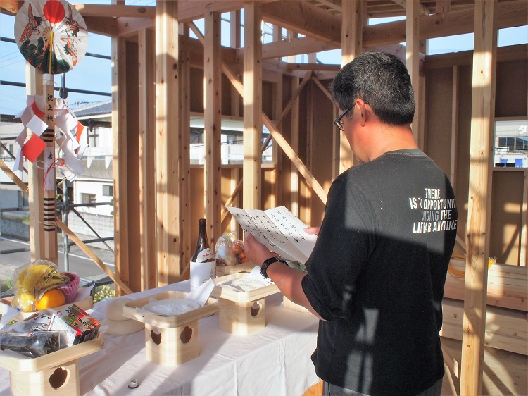 大工さんに祝詞を読んでもらいます。