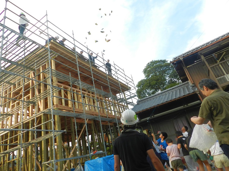 そして四方に供えていたお餅を投げました(‘ω’)ノ