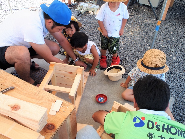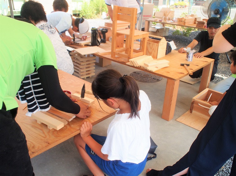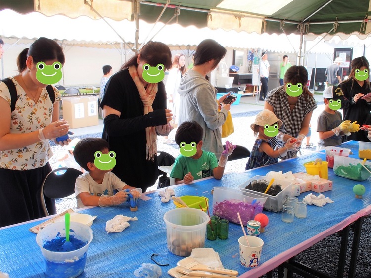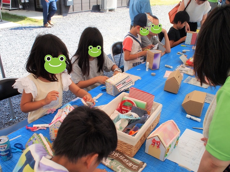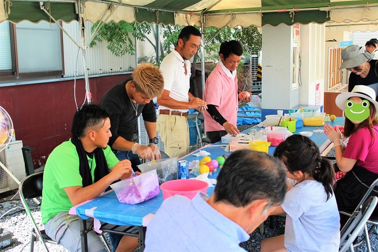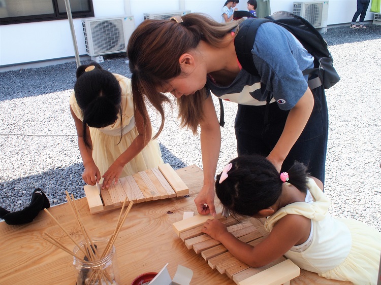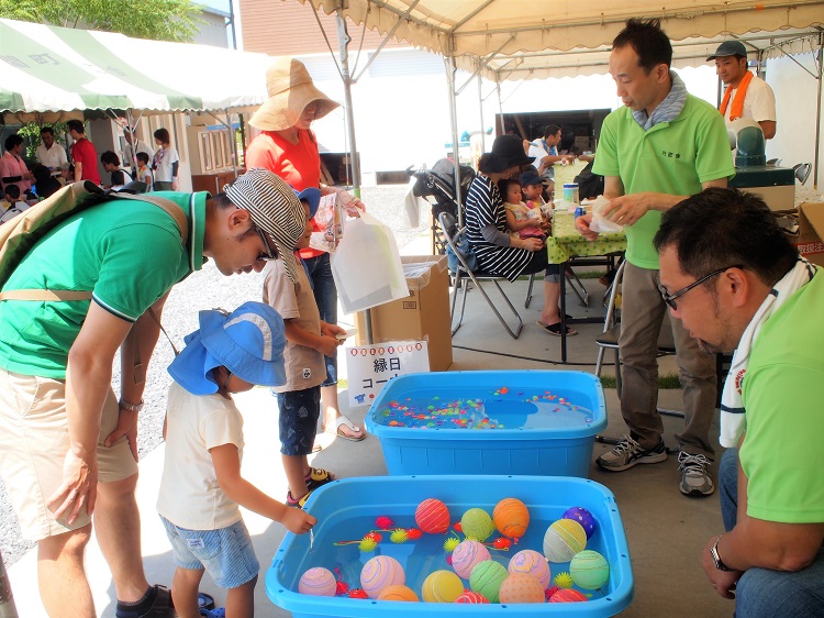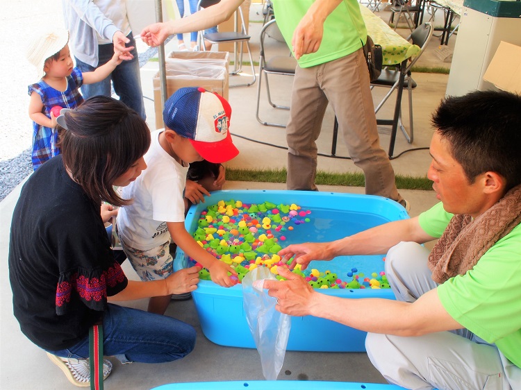 縁日コーナーでは一生懸命に景品を取ろうとする