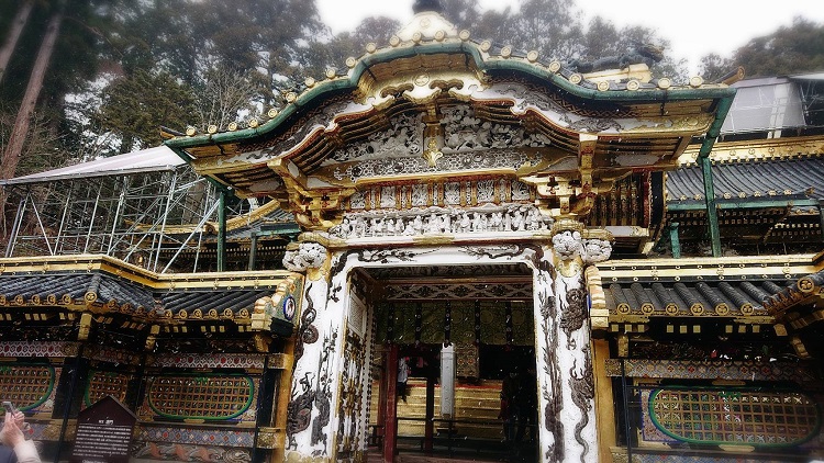 陽明門をくぐって正面に見えるのは、国宝の唐門です。