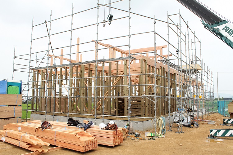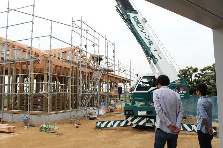 朝から大工さんが上棟に向けて