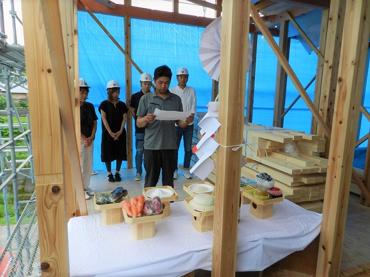 四方に餅を置き、米、塩、酒で四方清めをします!