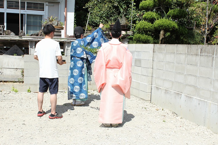 続いて家の四方にお米と酒をまいて清めます