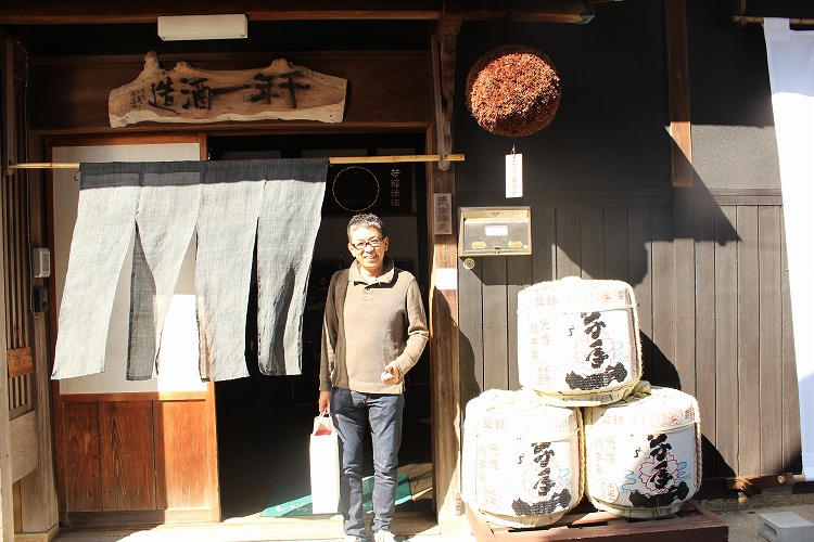 酒造の入り口でいい笑顔のサッシ屋さん!