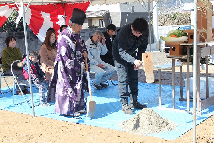 祝詞を読み終わり宮司さんが四方清めを行った後、