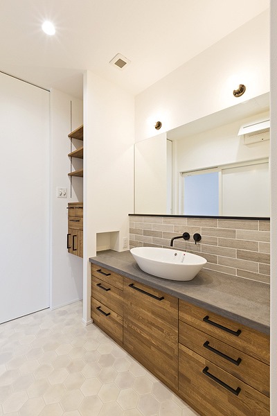 お家のテイストに合わせた居心地のいい洗面台に。