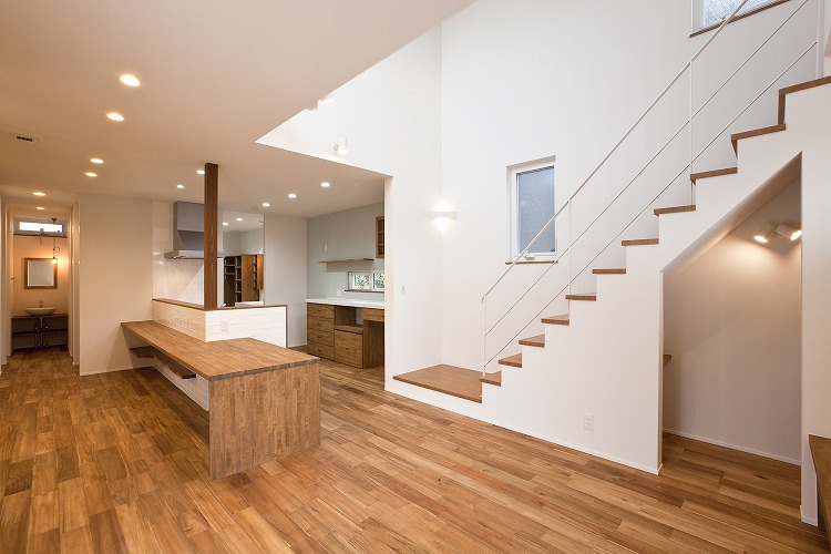 吹き抜け階段なので、LDKに沢山自然光の入る