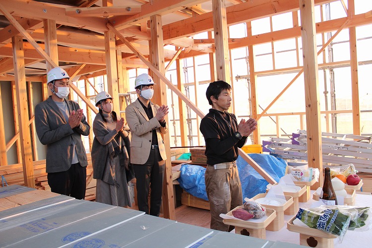 ↑のお写真は、棟梁に祝詞を詠んで頂き