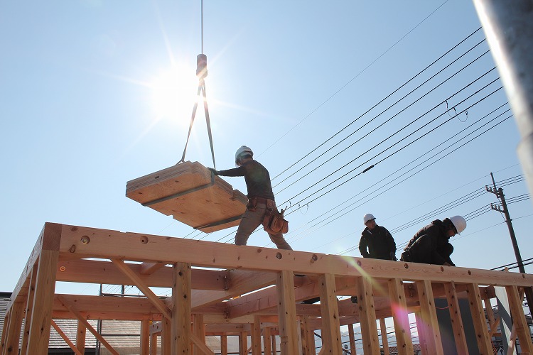 まだまだ寒い日が続きますか快晴で天候にも恵まれ大工さんもますます気合が入ります。