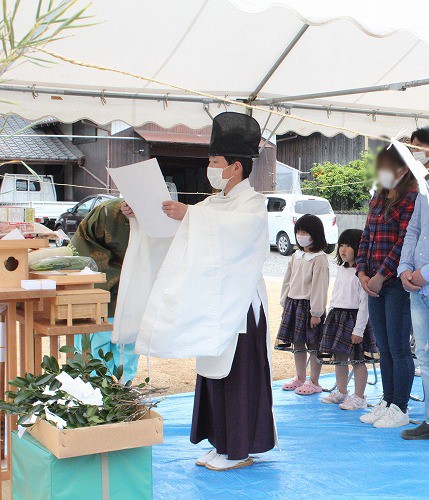 以後の工事の安全を祈る旨の祝詞を奏上します。