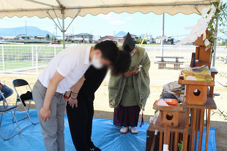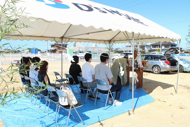 お施主様が「えい、えい、えい」と大きな声で鍬入れを行います。