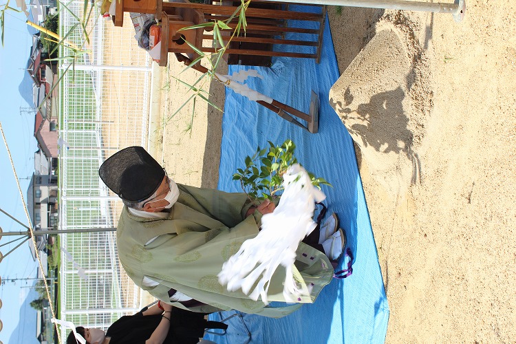 四隅も回りながら、お酒、米、酒をまいていきます。