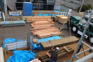 そんな中、大工さんは梁の上を軽い身のこなしでどんどん組み上げていきます。