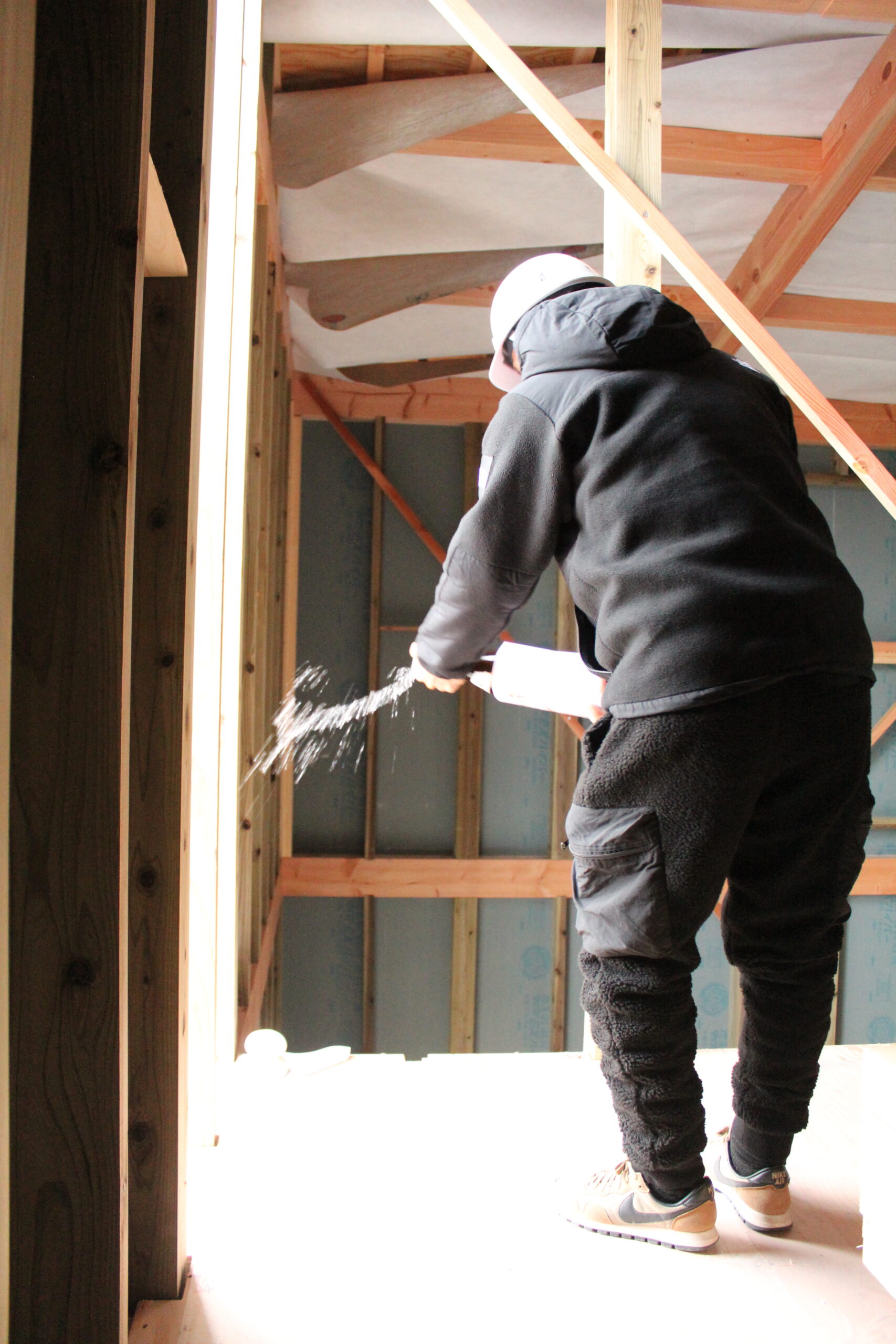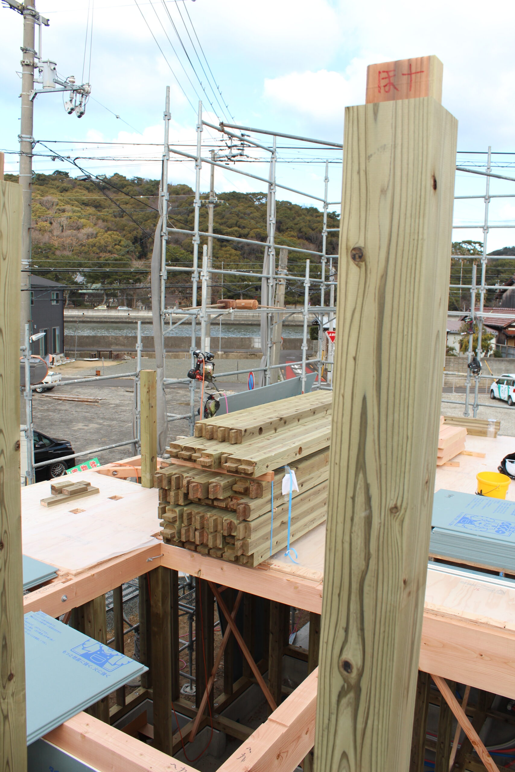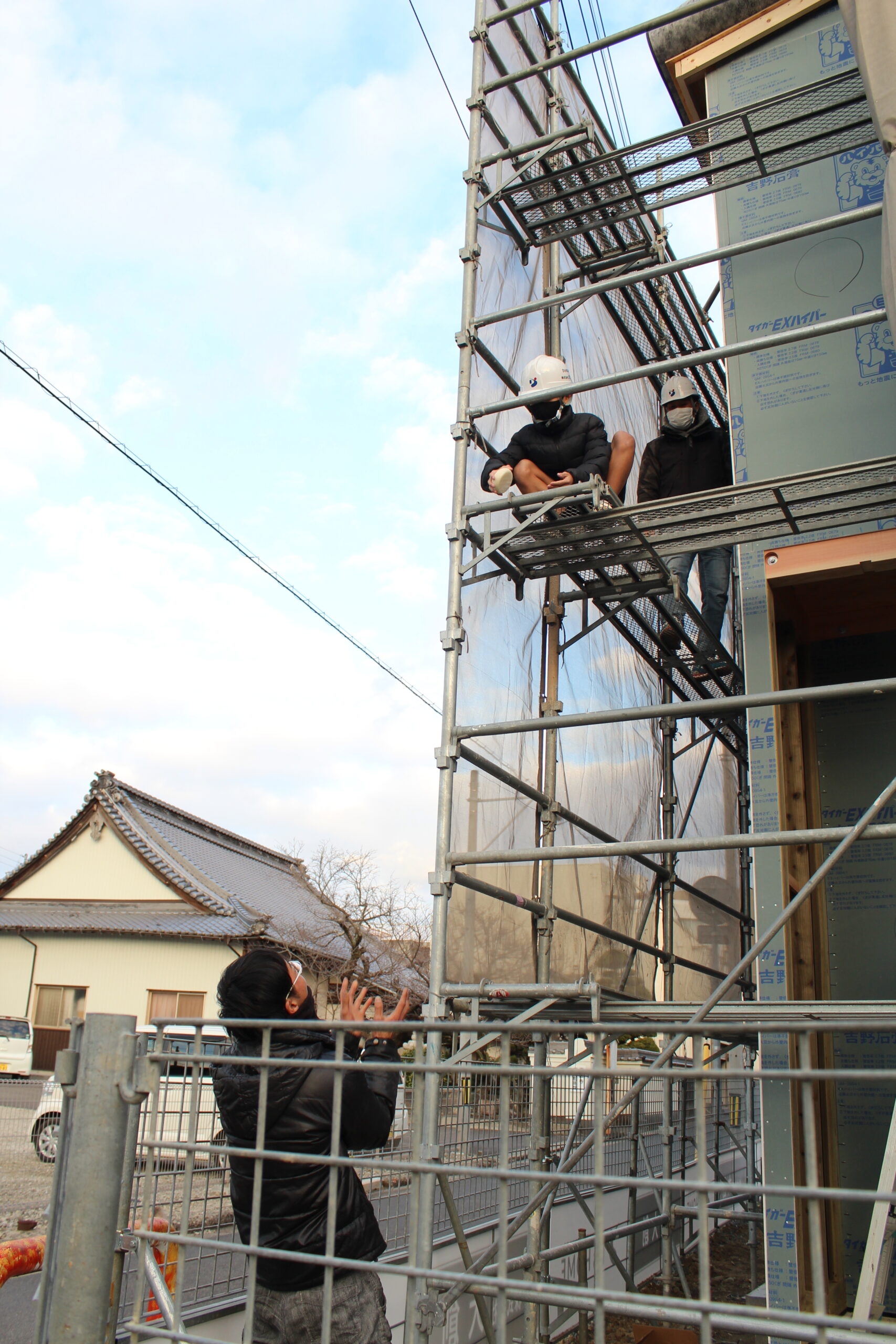 過ごしやすいお天気の中、大工さんが気持ちをこめて一生懸命組み立てています🏠