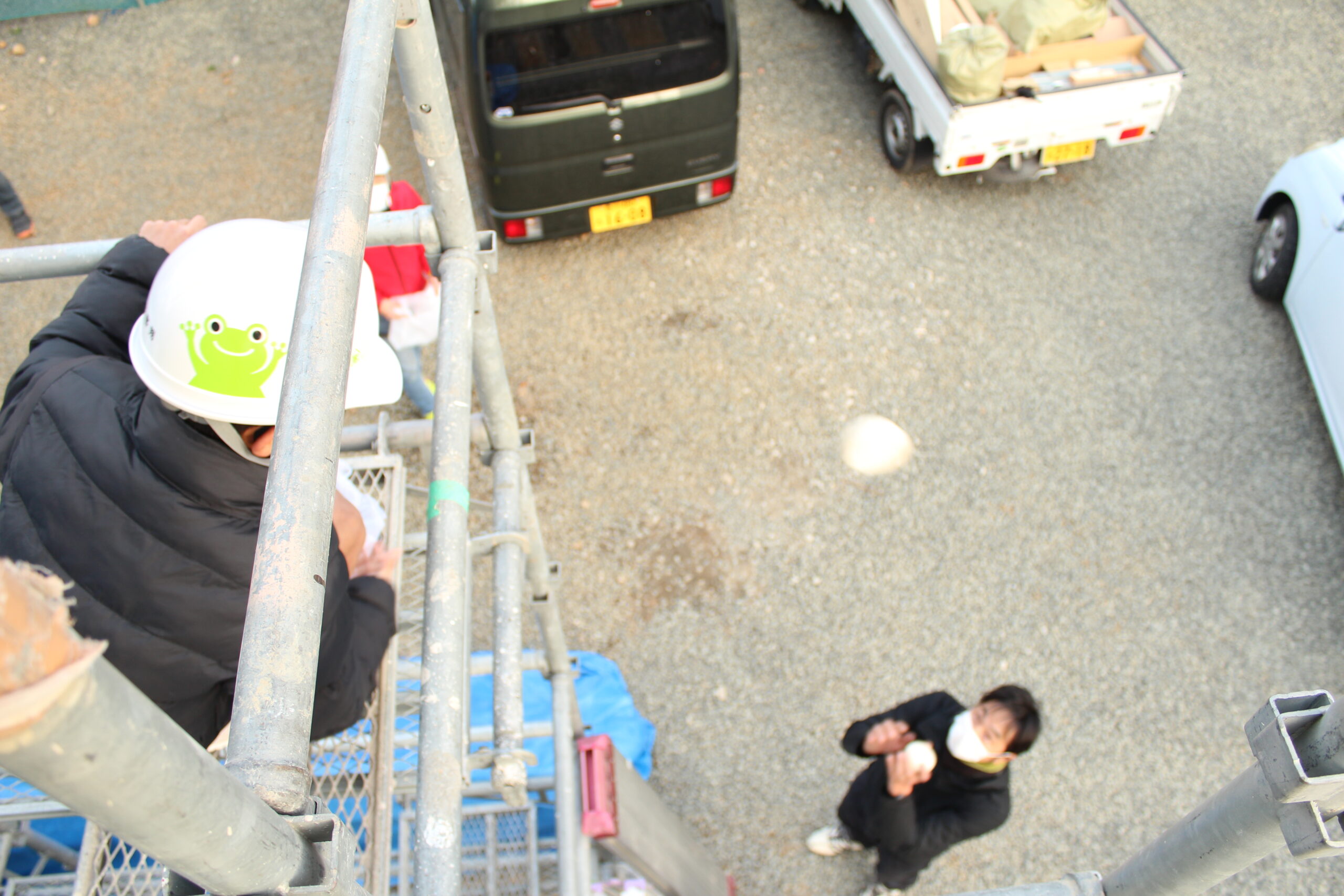 土地の四方に向かって先程お清めした四方餅を投げます。