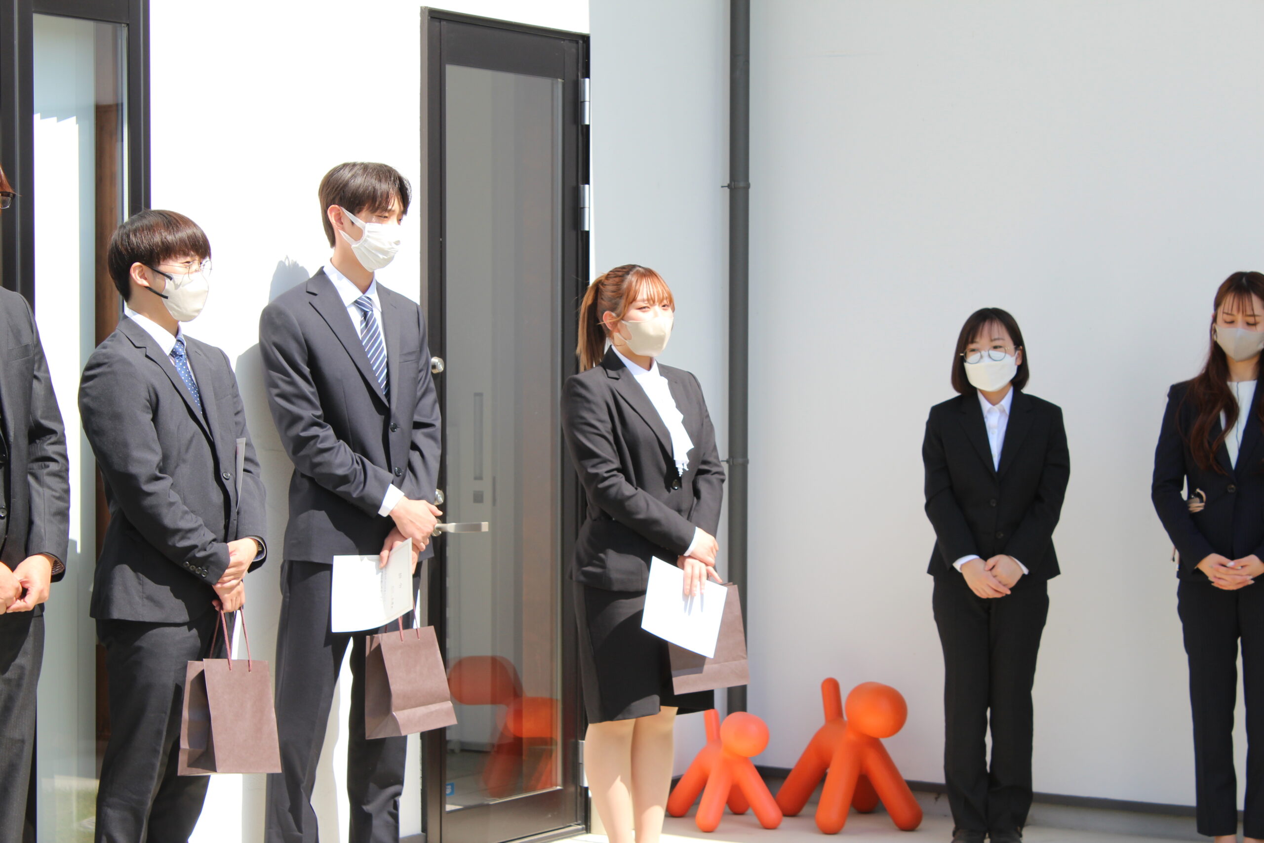 晴天だったため、外で気持ち良い風を浴びながらの入社式✨