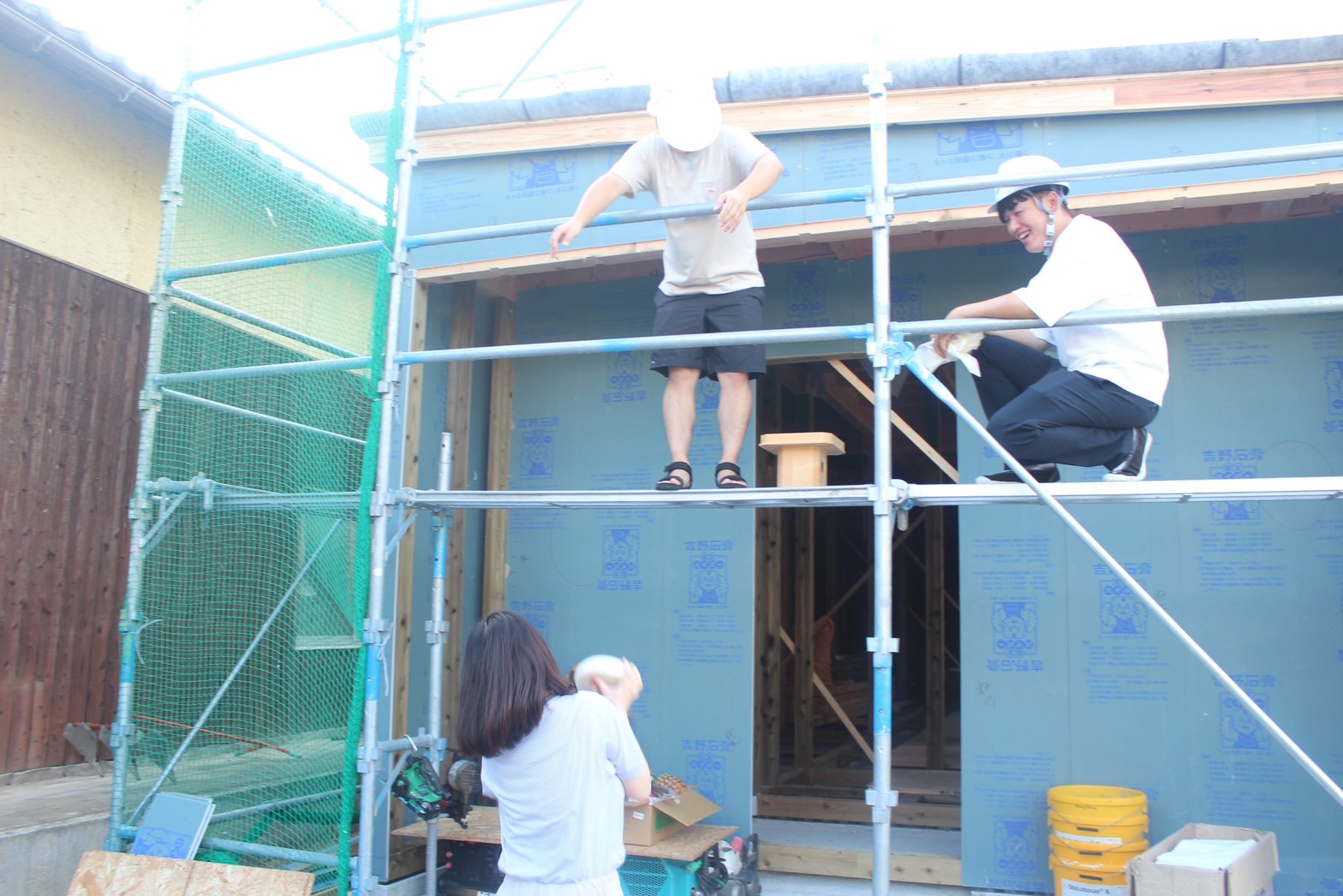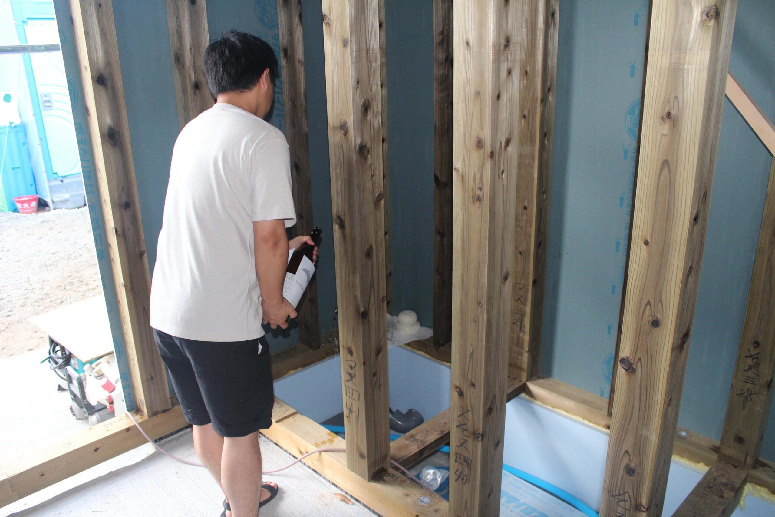 棟梁に続き、担当営業、お施主様も一緒にお清めに回ります(*‘ω‘ *)