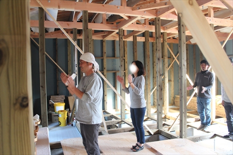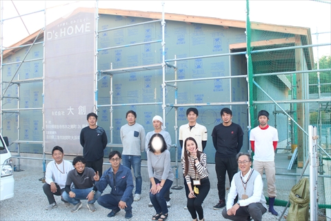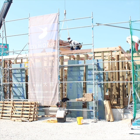 お天気にも恵まれ職人さん達のチームワークで無事上棟することが出来ました。
