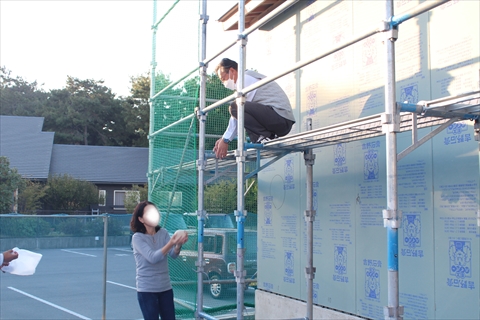 このあと建物の四隅を塩・米・お神酒でお清めをしていきます。