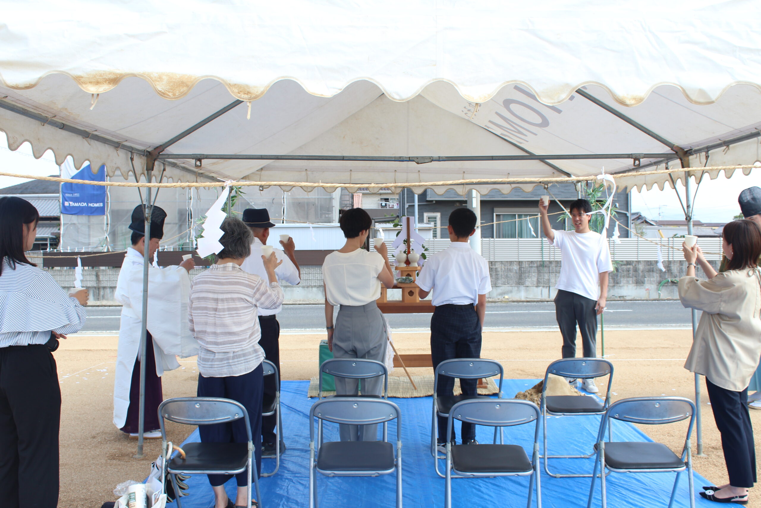当日は、とても良いお天気に恵まれての地鎮祭となりました。