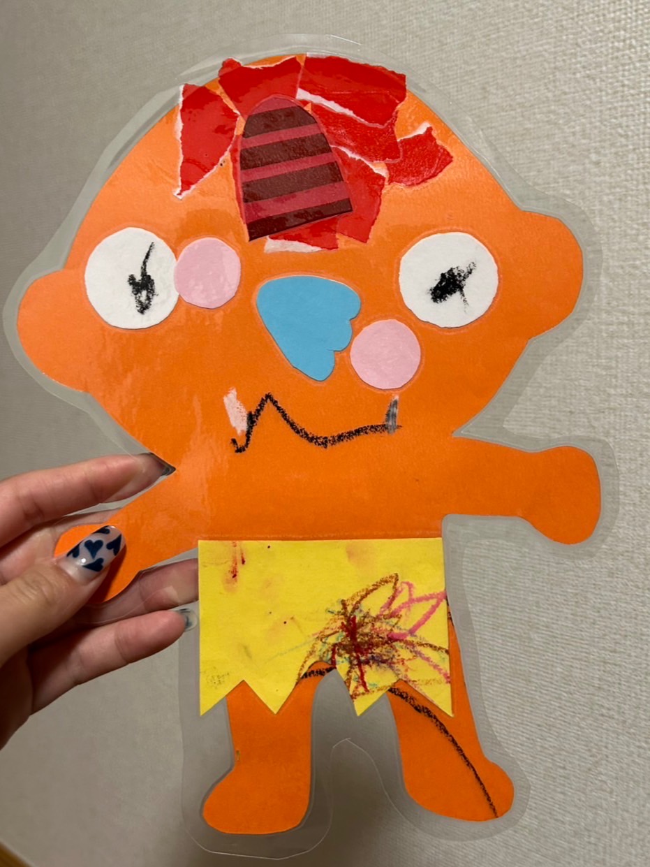 最後は節分の製作で持って帰ってきた鬼と(自分で作ったのに怖くて泣きます)