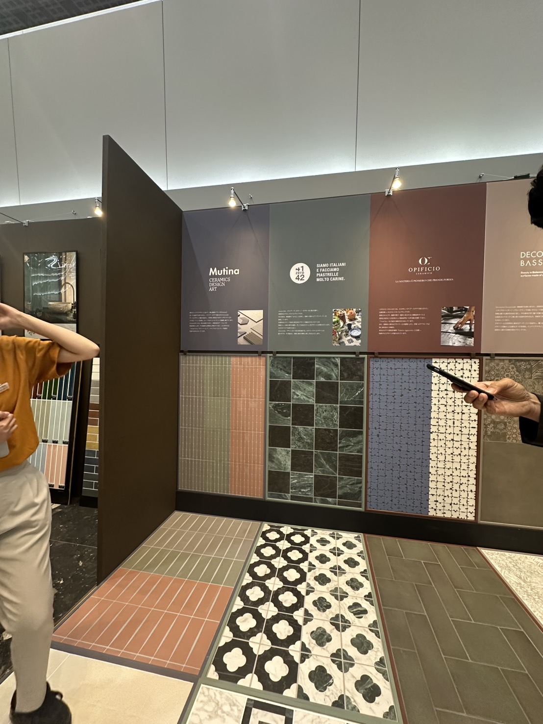 今回の展示会では、高級感あふれる大判タイル、アクセントとして使えるモザイクタイルなど、住まいを豊かに彩るアイテムが多数展示されていました。