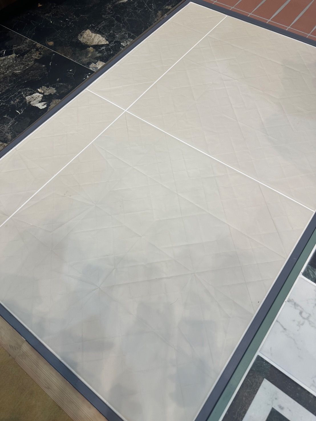 シンプルなタイルですが、折り紙の折り目があることで普通のホワイトタイルとは少し違った雰囲気になりそうなもの物でした😊