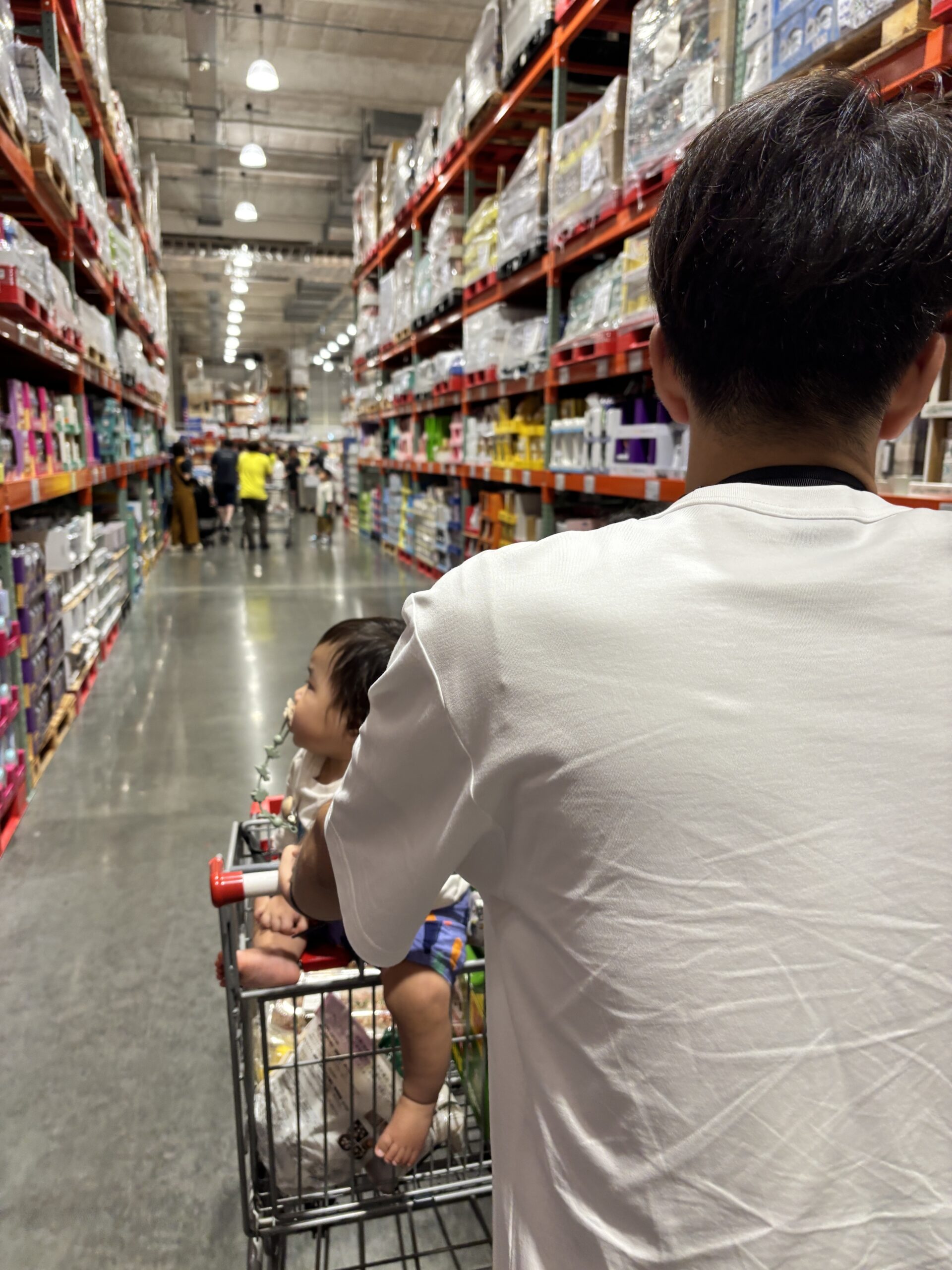 うちの子はこの時1歳なる前くらいですがコストコカートも手馴れちゃってます(笑)(笑)