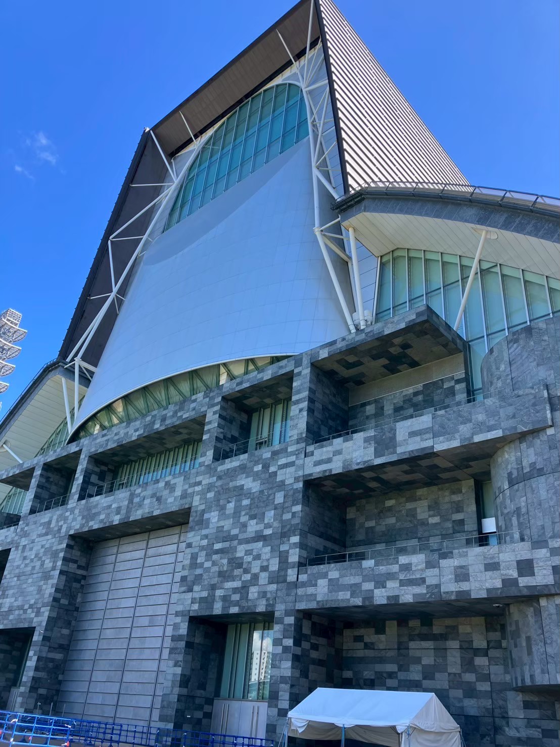 建築物見学では、設計:磯崎新(いそざきあらた)氏のグランシップ🏢