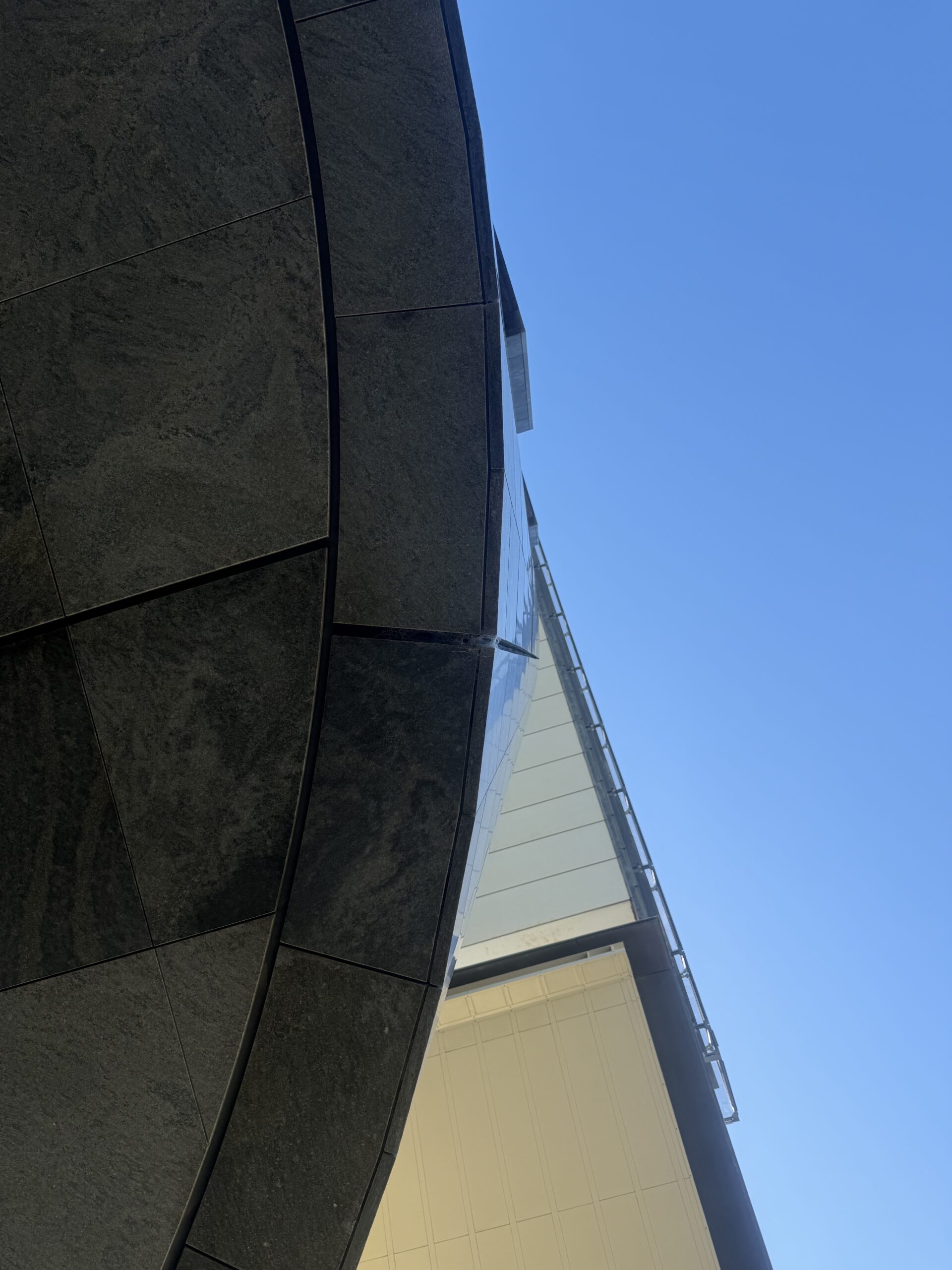 建物正面の巨大な「白い曲面」は、陰影で変化する造形美。