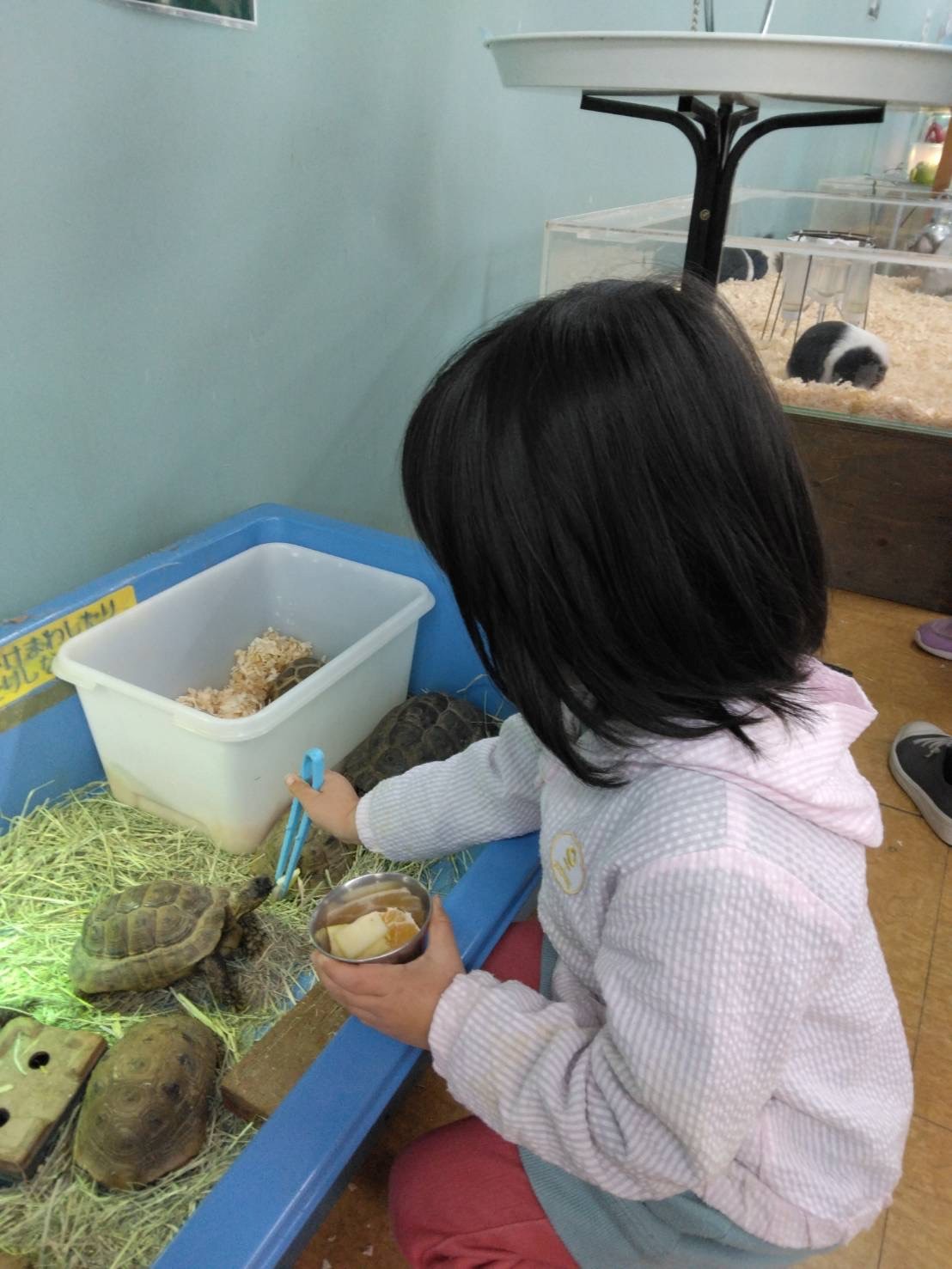 しかし、いざ入ってみると名前の通りほとんどのいきものに自由に触れる、えさやりができるというシステムで娘たちも大喜びでした。