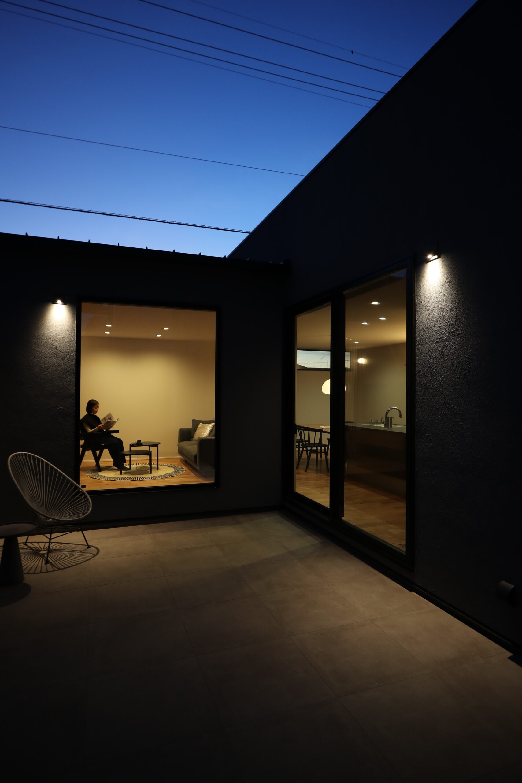 夜の室内から外を眺めたときに、その計画の意図がはっきりと分かります。
