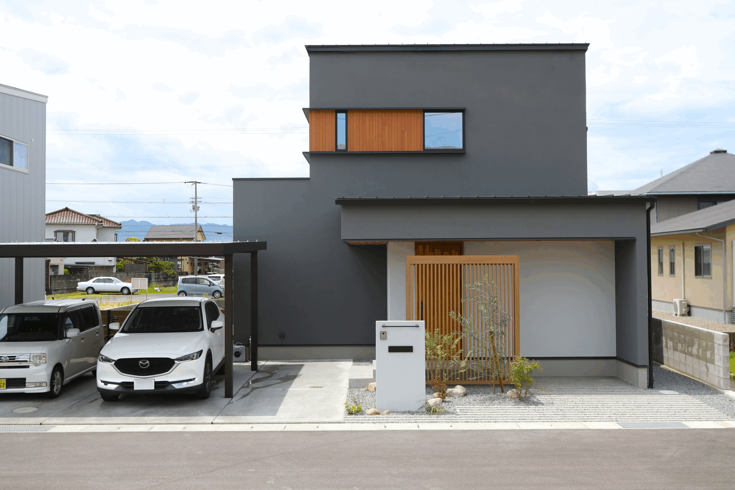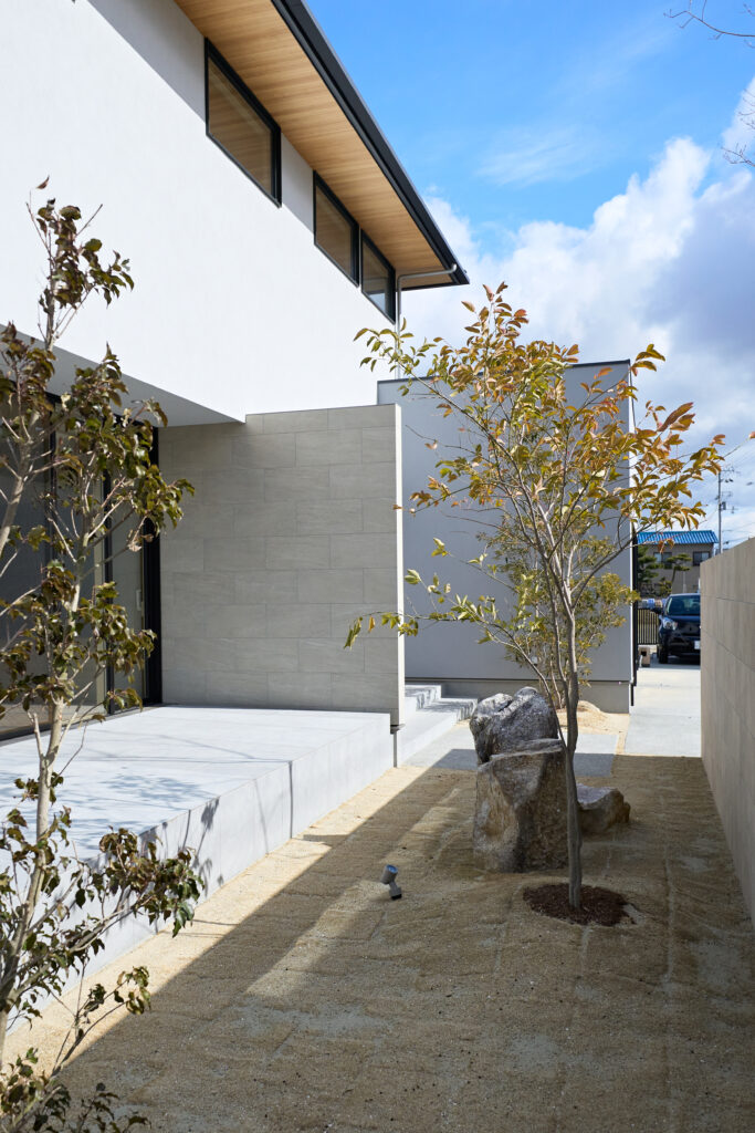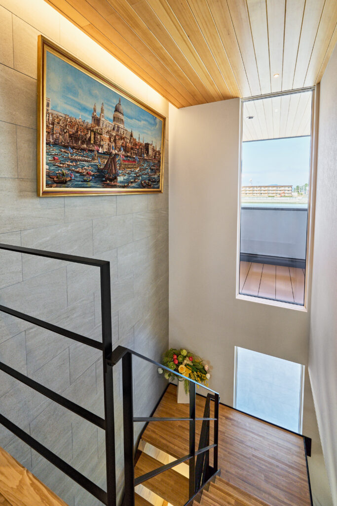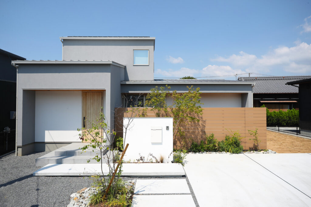 直線美が際立つ外観と吹抜けの光が紡ぐ家