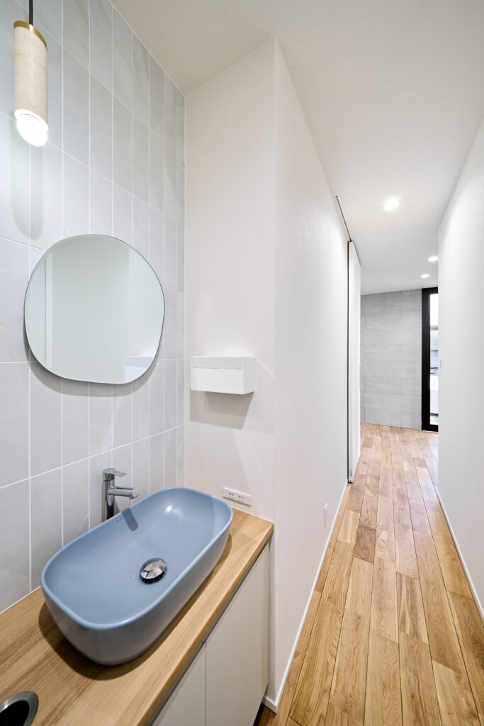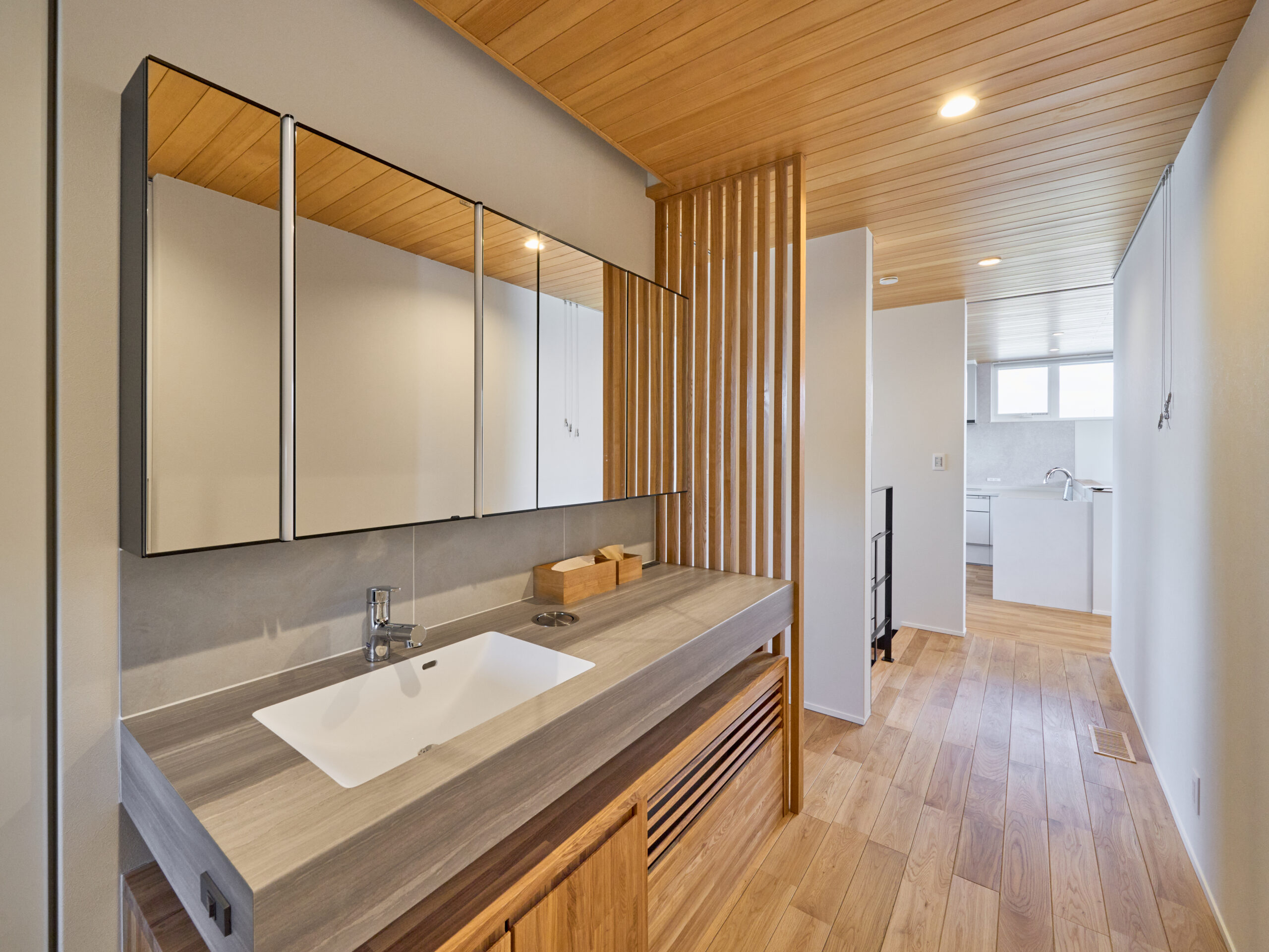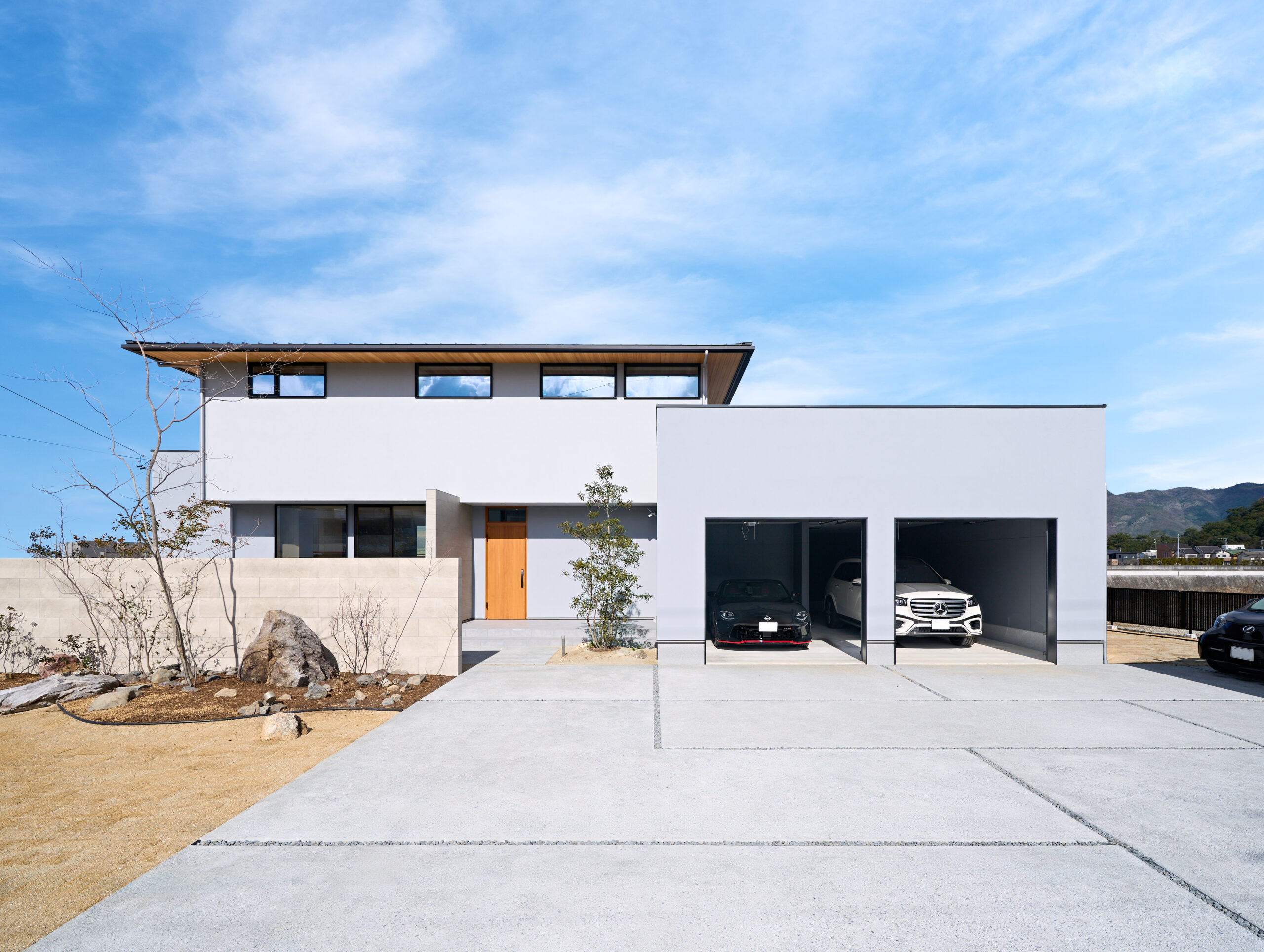 直線美が際立つ外観と吹抜けの光が紡ぐ家