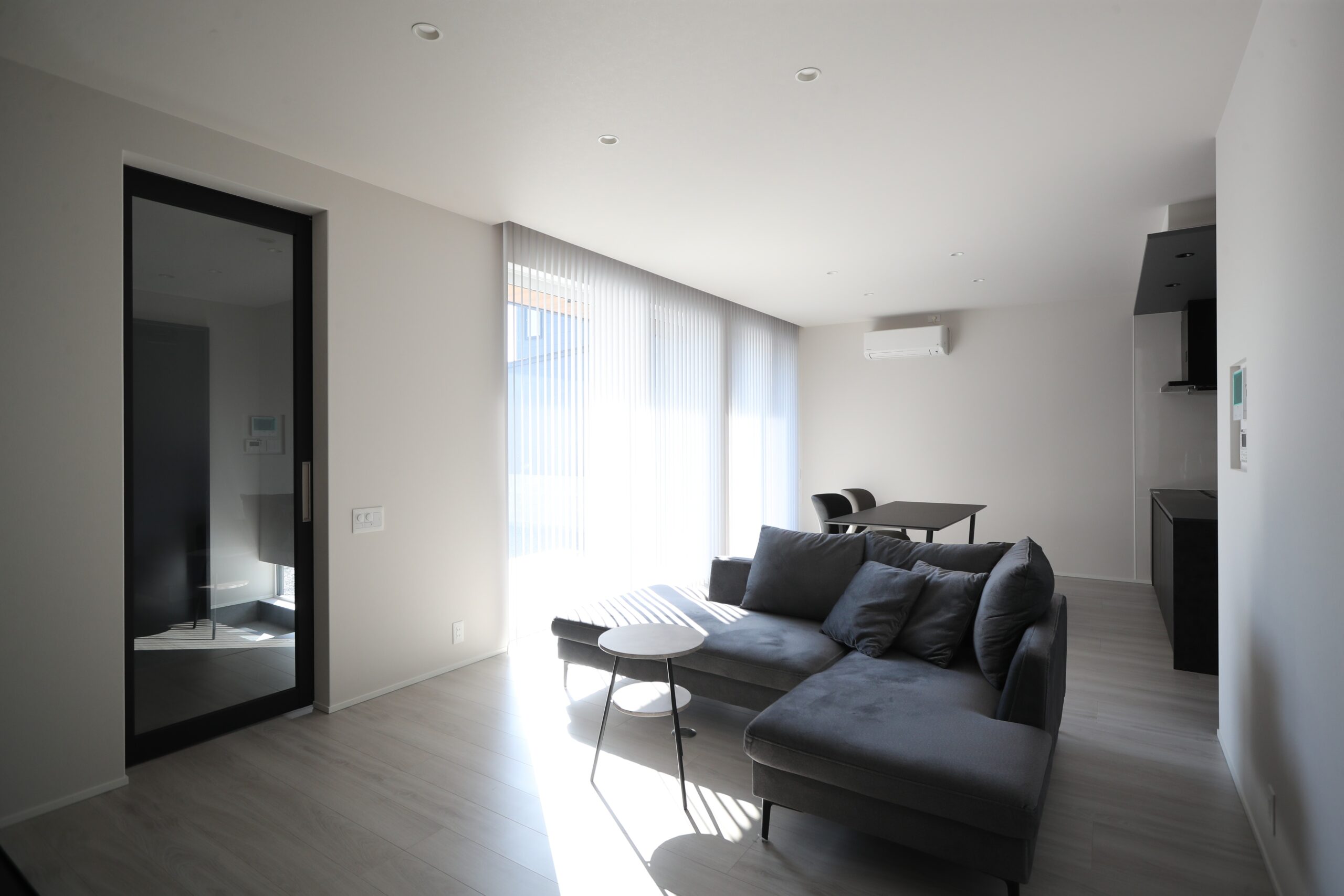グレートーンに映える、フラットな暮らしを楽しむ平屋