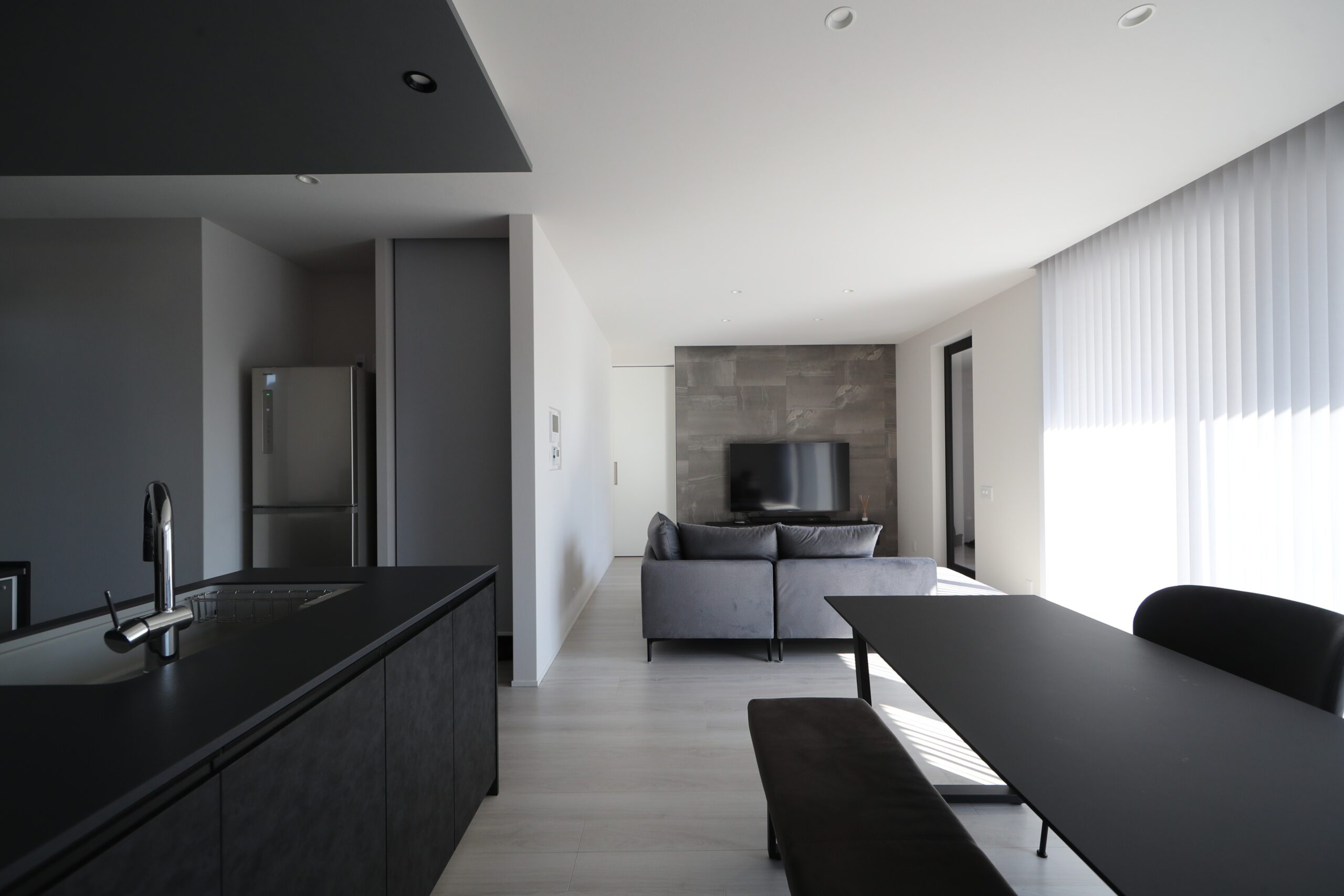 グレートーンに映える、フラットな暮らしを楽しむ平屋